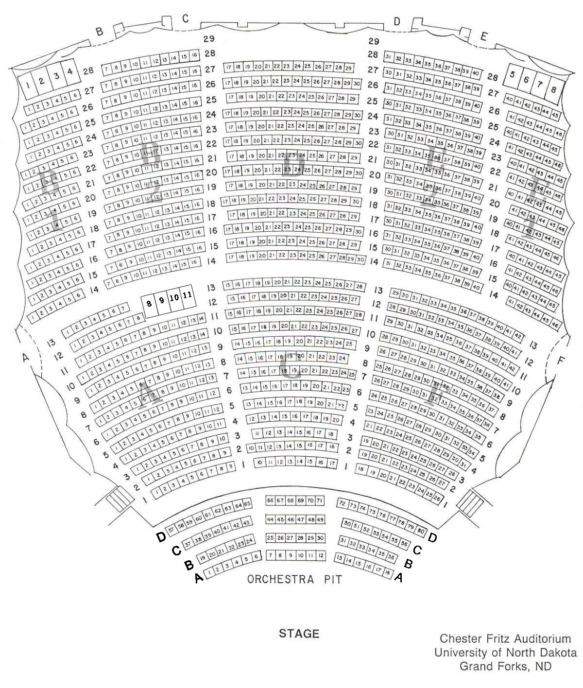 The Chester Fritz Performing Arts Center accommodates up to 2,400 audience members on three seating levels.